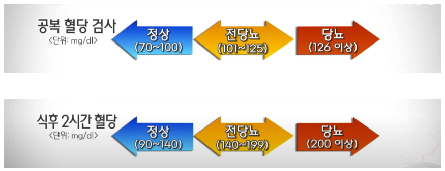 따라서 공복 혈당이 100 mg/dL 이상이거나 당부하 후 2시간 혈당이 140 mg/dL 이상인 경우 고혈당으로 판단됩니다.