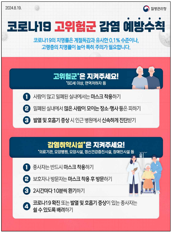 또한, 질병청은 치료제를 고위험군 환자에게 우선적으로 사용하고, 감염 취약시설에 대한 예방 조치와 신속한 대응을 강조했습니다. 여름철 실내 환기와 마스크 착용 등 감염병 예방 수칙 준수도 중요하다고 당부했습니다.