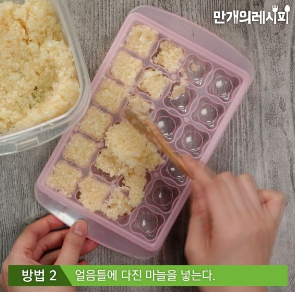 1. 얼음틀에 다진 마늘을 넣습니다.