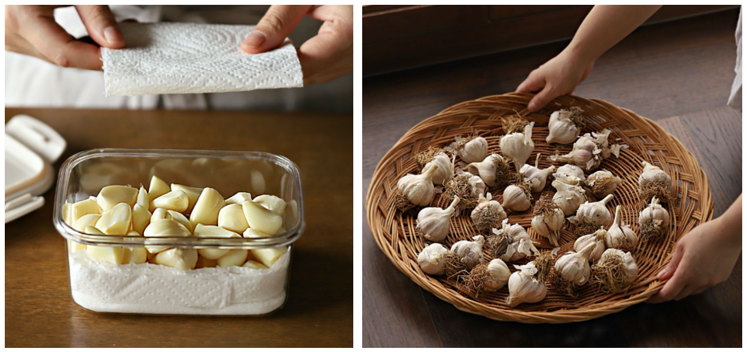 - 햇마늘은 수분이 많아 충분히 말려야 오래 보관할 수 있습니다.